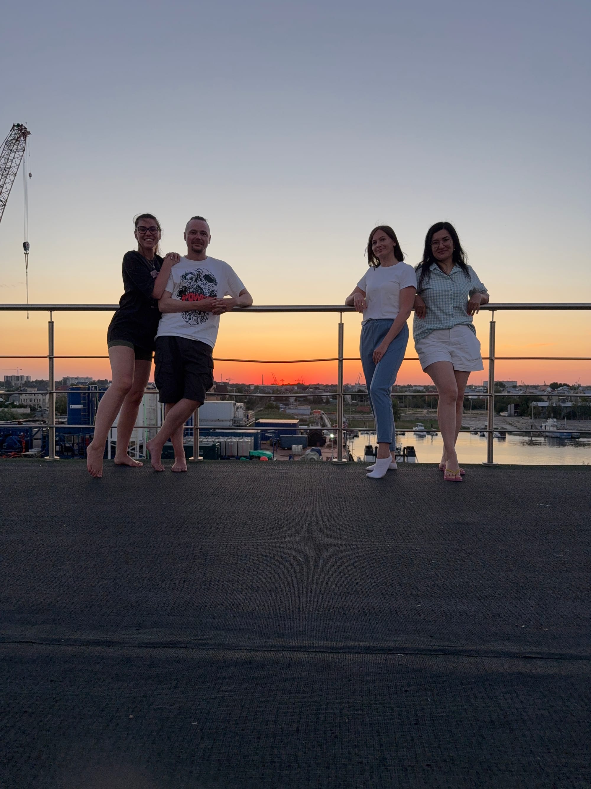 В гостинице у нас был номер на четверых с большим балконом-терассой. Мы немного отдохнули, прогулялись, поспали, поели. В общем использовали этот дополнительный выходной по назначению, после таких насыщенных дней. Ну а на балконе-терассе мы непременно сфоткались на закате.