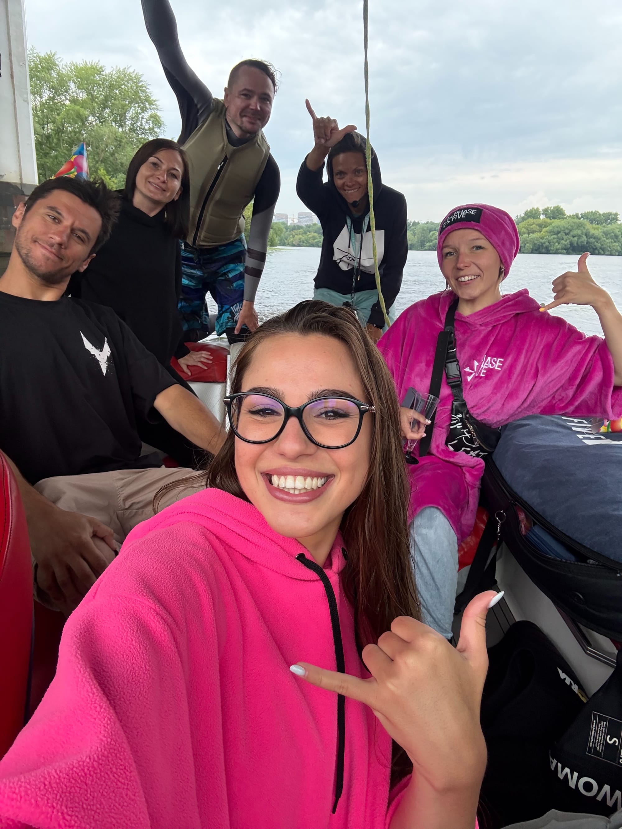 - Перед ней восседает Алексей - мой любимый пилот катера в вейкфории.