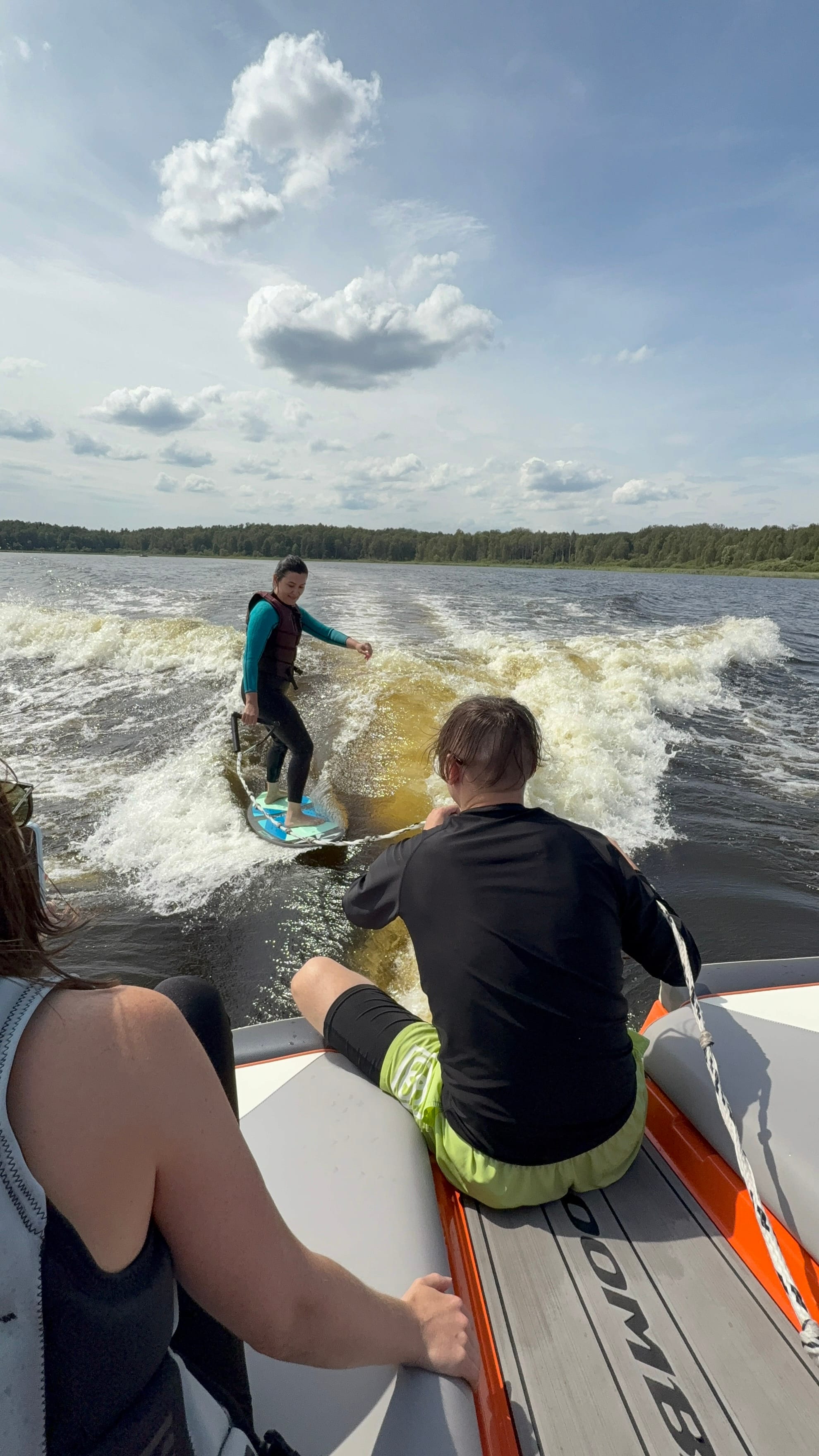 На территории отеля есть вейксерф клуб, но ценник у них оказался оверпрайснутым. Наш тренер посоветовала Secret spot от wake division и мы остановились на нем, хоть он и был примерно в часе езды от Конаково, что нас не слишком смутило - у нас же выходной выезд.